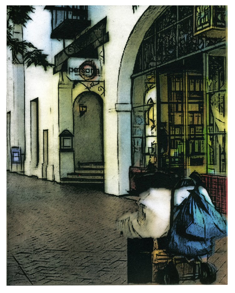 After my retirement from the University of California Santa Barbara after forty years of teaching, research and administration, I began to explore printmaking. Working mainly in the medium of polymer etching (a method employing UV sensitive polymer coated plates to create intaglio prints). Using my original photographs as a point of departure, my images are digitally manipulated to produce texture, line and value contrasts that utilize the expressive potential of the medium. My prints are limited edition, hand pulled prints. I combine my etchings with either digitally created color fields or hand coloring with translucent watercolor. I also work in the medium of collage on paper or board.